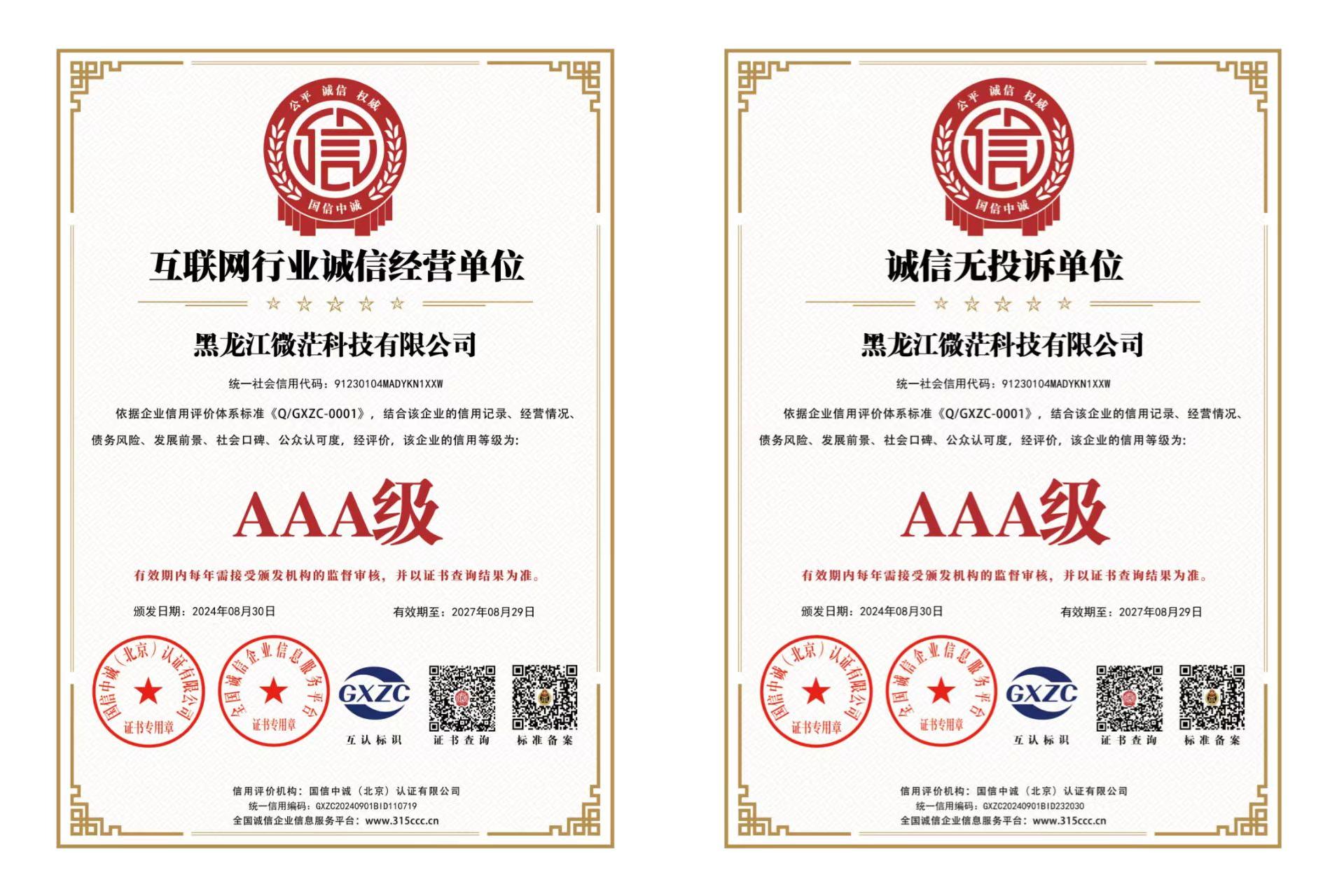 • AAA级互联网行业诚信经营单位 AAA级诚信无投诉单位